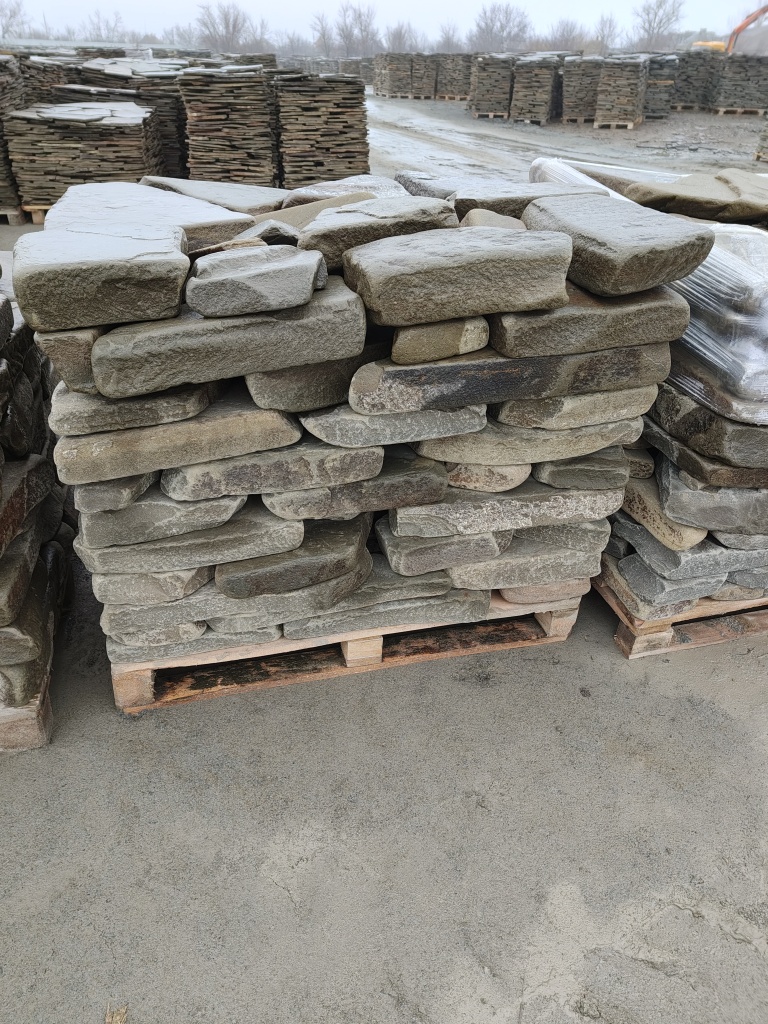 Галтованный серо-зелёный песчаник для ландшафтного дизайна - подпорные стены, водопады, альпинарии, альпийские горки, сухие каменные ручьи и т.д.